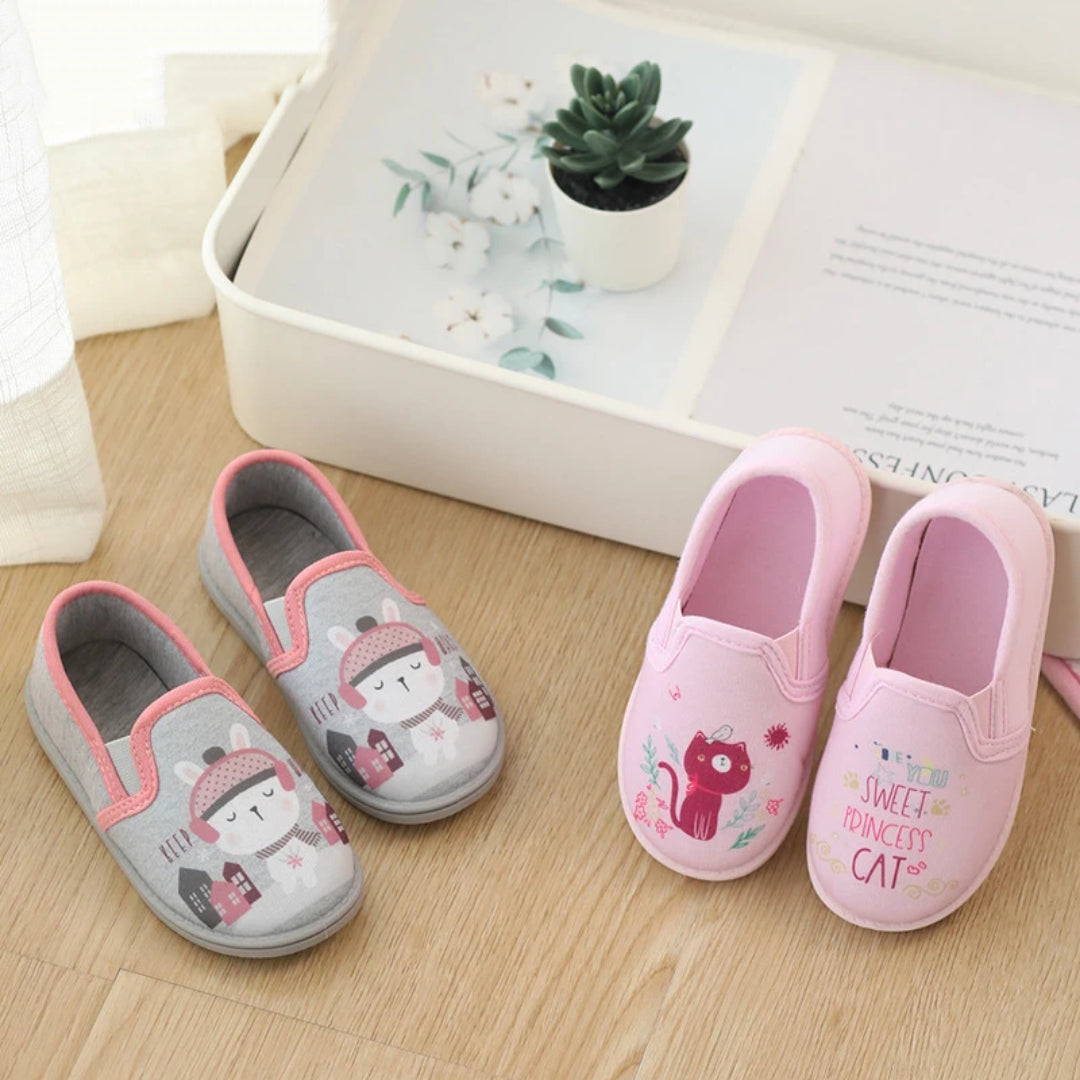 Chaussons fille charentaises | Chat joyeux